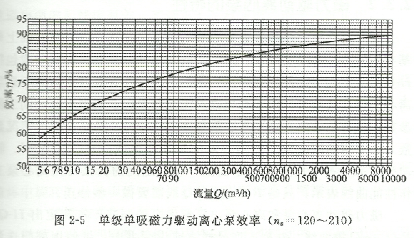 圖2-5單級(jí)單吸磁力驅(qū)動(dòng)離心泵效率(ns=120~210)