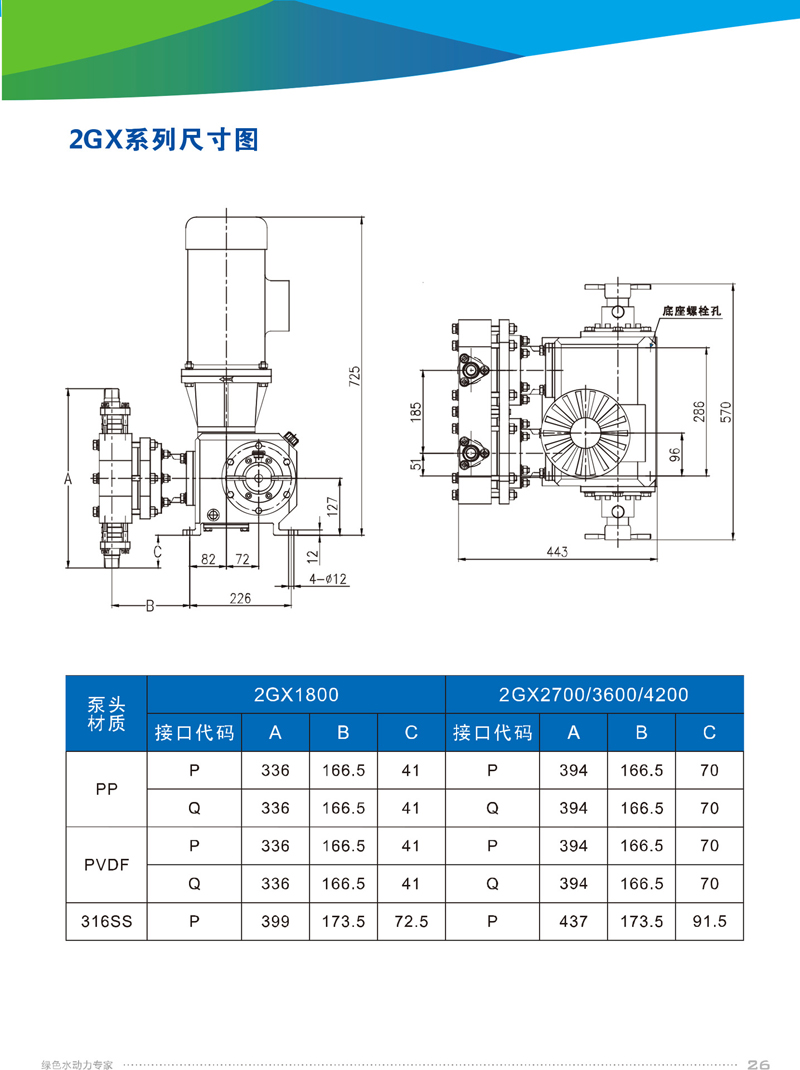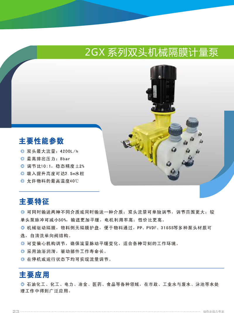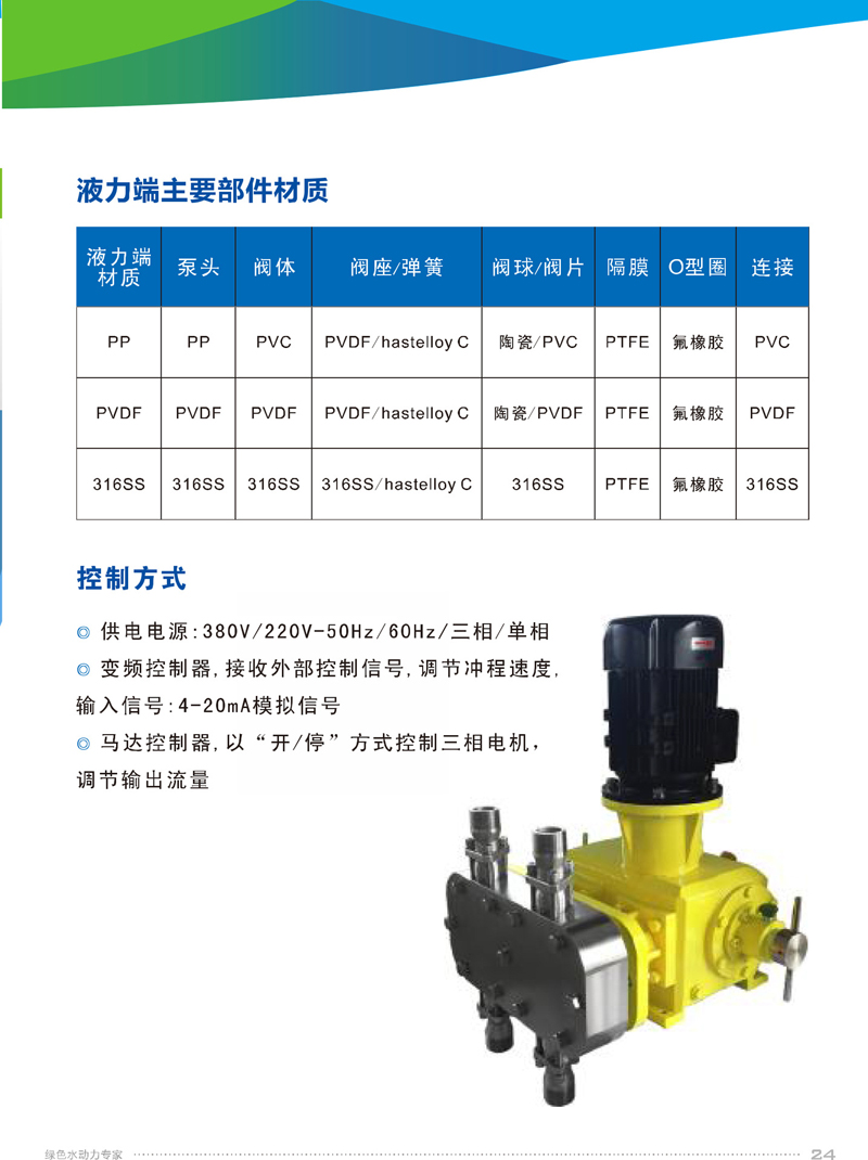 2、機(jī)械驅(qū)動(dòng)隔膜,物料側(cè)無(wú)隔膜護(hù)盤(pán),便于物料通過(guò),PP、PVDF、316SS等多種泵頭材質(zhì)可選,自清洗單向閥結(jié)構(gòu)。